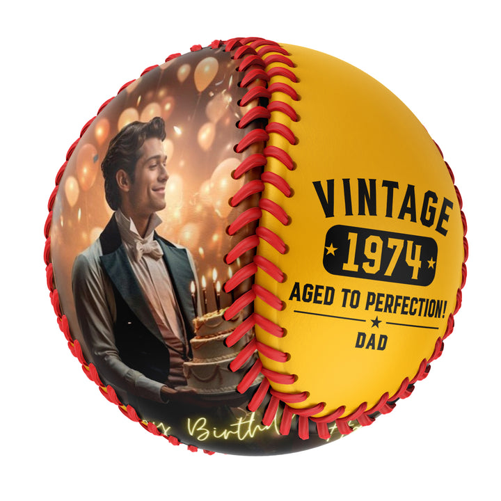 Personalized Dad Grandpa Birthday Name Time Photo Gold Baseballs