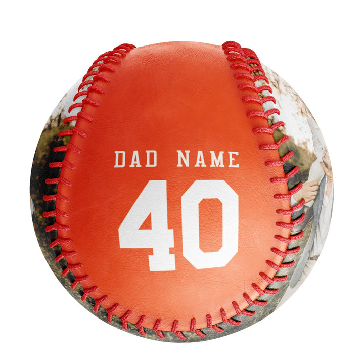 Personalized Dad Name Age Photo Orange Baseballs