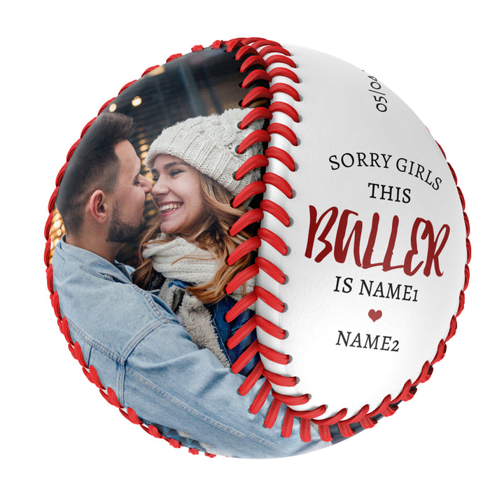 Sorry Girls This Baller Personalized Anniversary Name Date Photo White Baseballs