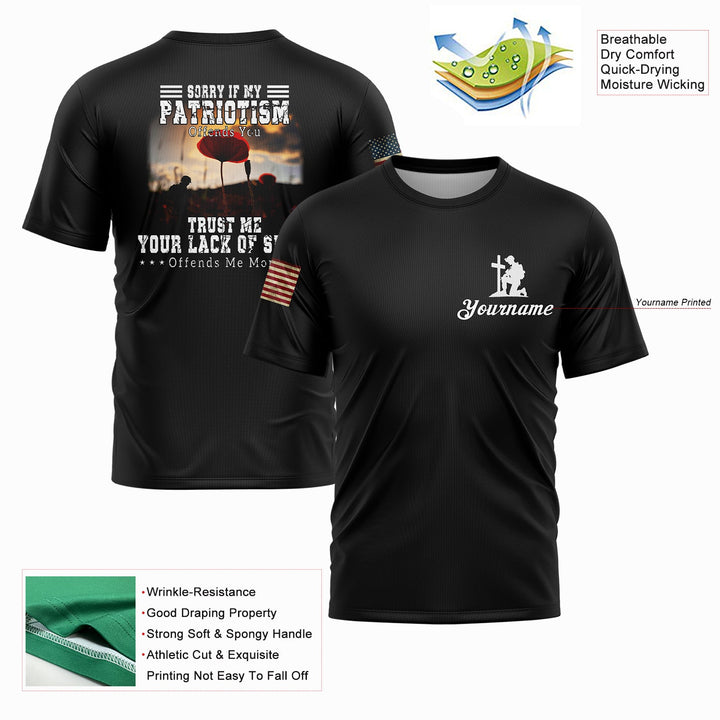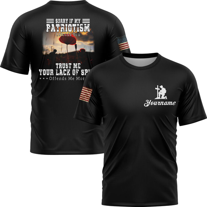 Sorry If My Patriotism Offends You Trust Me Your Lack Of Spine Offends Me More Custom Black American Patriot Name T-Shirt