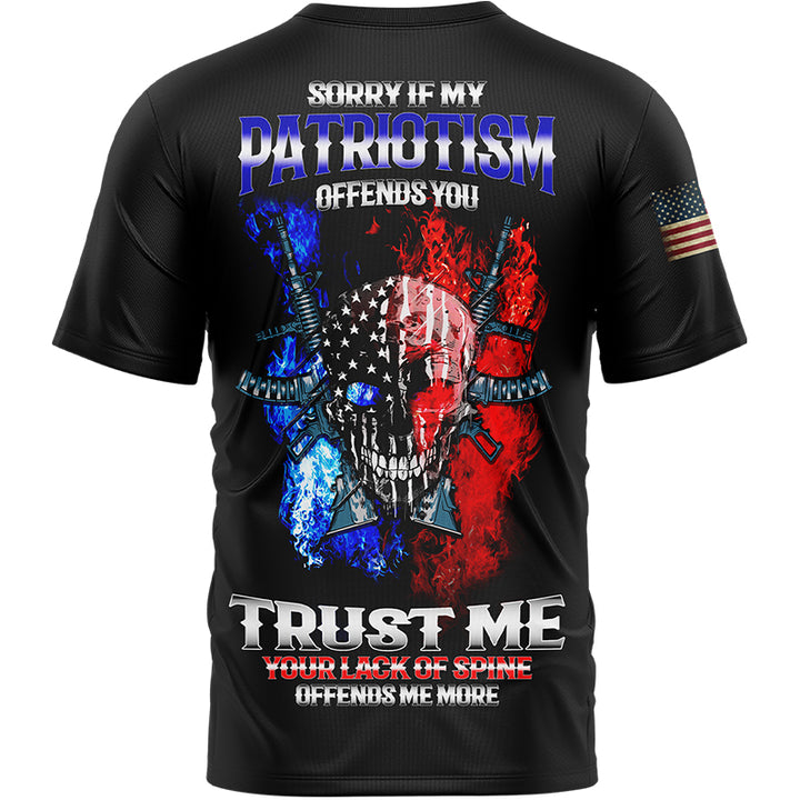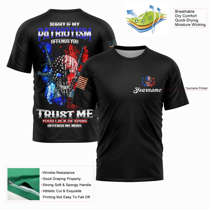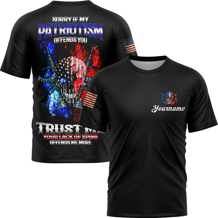 Sorry If My Patriotism Offends You Trust Me Your Lack Of Spine Offends Me More Custom Black American Patriot Name T-Shirt