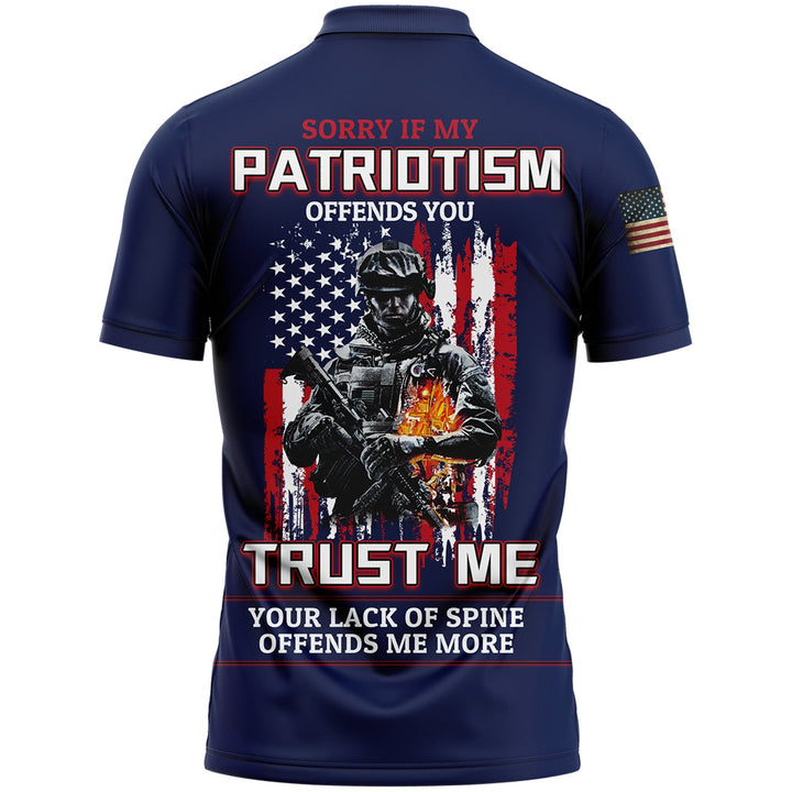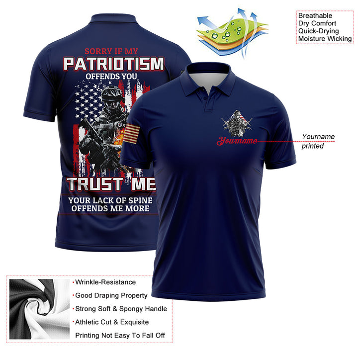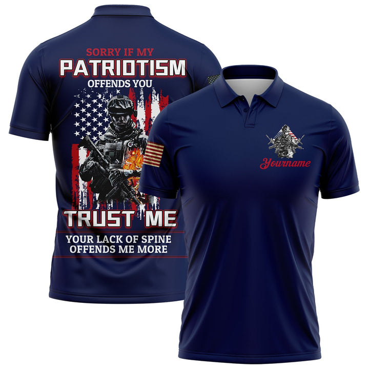 Sorry If My Patriotism Offends You Trust Me Your Lack Of Spine Offends Me More Custom Navy American Patriot Name Golf Polo Shirt