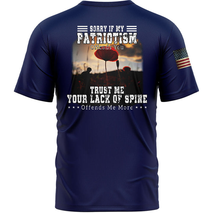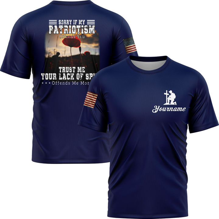 Sorry If My Patriotism Offends You Trust Me Your Lack Of Spine Offends Me More Custom Navy American Patriot Name T-Shirt