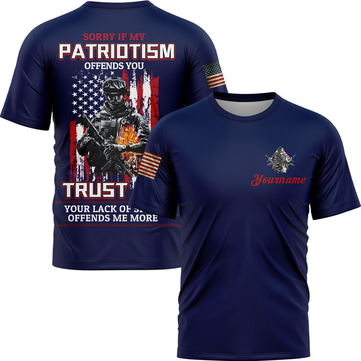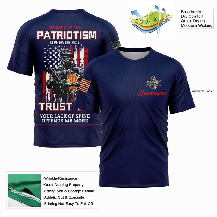 Sorry If My Patriotism Offends You Trust Me Your Lack Of Spine Offends Me More Custom Navy American Patriot Name T-Shirt