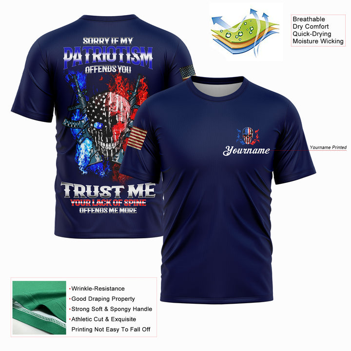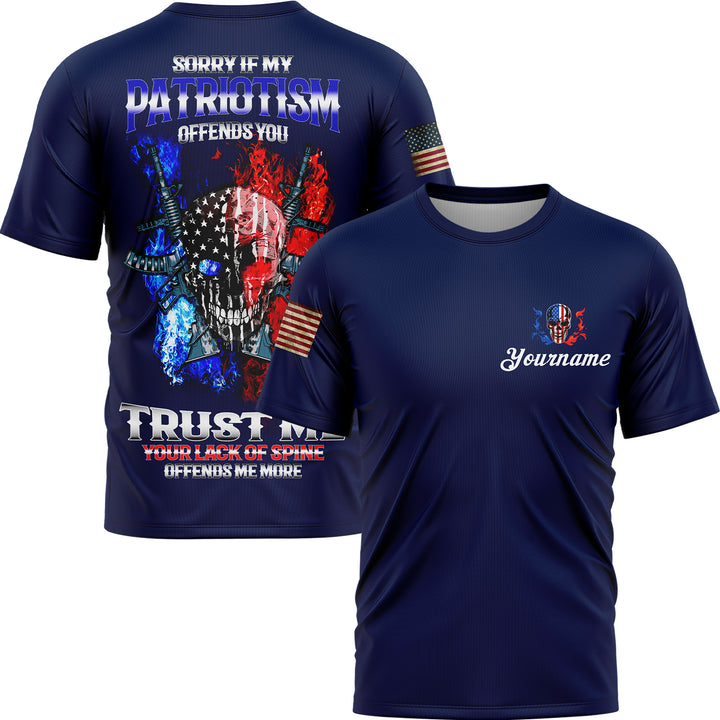 Sorry If My Patriotism Offends You Trust Me Your Lack Of Spine Offends Me More Custom Navy American Patriot Name T-Shirt