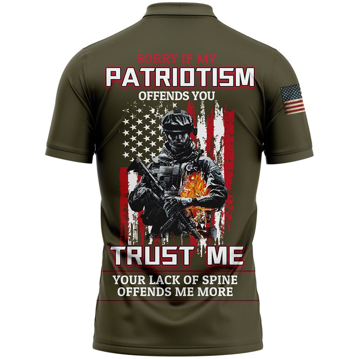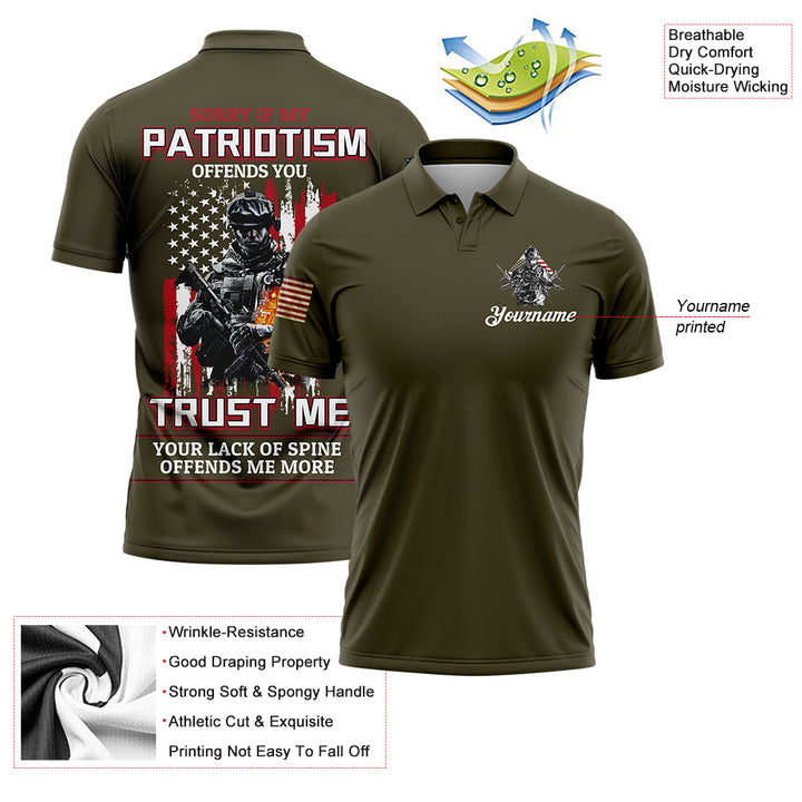 Sorry If My Patriotism Offends You Trust Me Your Lack Of Spine Offends Me More Custom Olive American Patriot Name Golf Polo Shirt