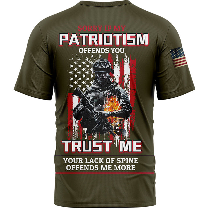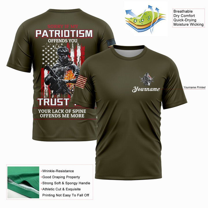 Sorry If My Patriotism Offends You Trust Me Your Lack Of Spine Offends Me More Custom Olive American Patriot Name T-Shirt