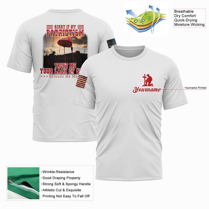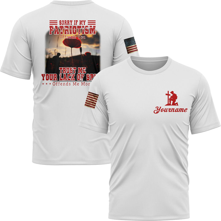 Sorry If My Patriotism Offends You Trust Me Your Lack Of Spine Offends Me More Custom White American Patriot Name T-Shirt