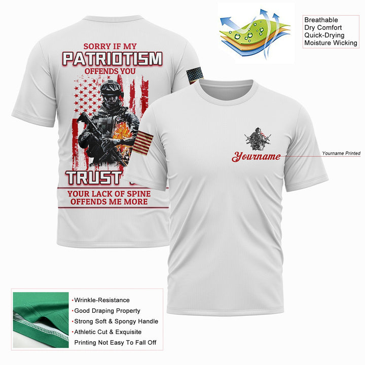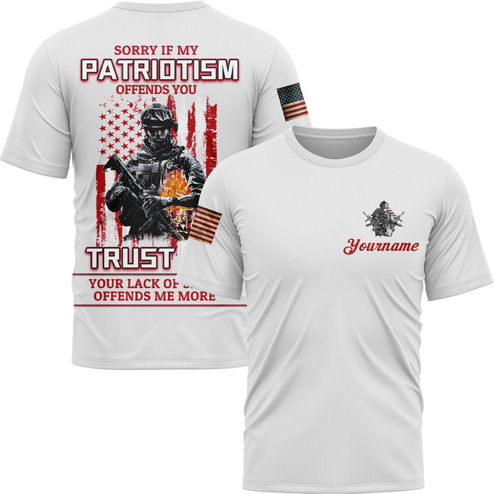 Sorry If My Patriotism Offends You Trust Me Your Lack Of Spine Offends Me More Custom White American Patriot Name T-Shirt