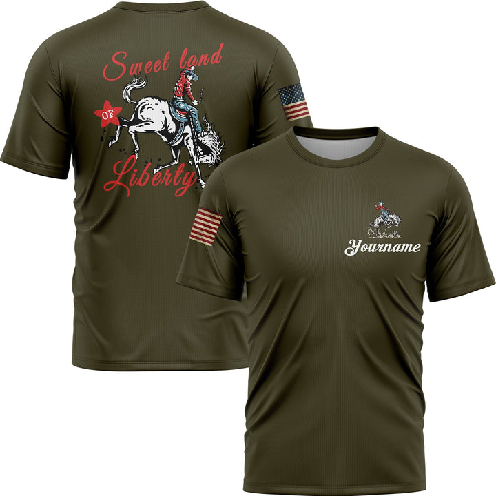 Sweet Land Of Liberty Custom Olive American Patriot Name T-Shirt