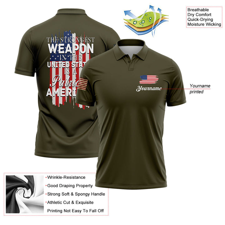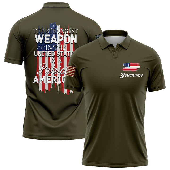 The Strongest Weapon In The United States Is A Patriotic American Custom Olive American Patriot Name Golf Polo Shirt