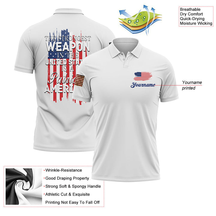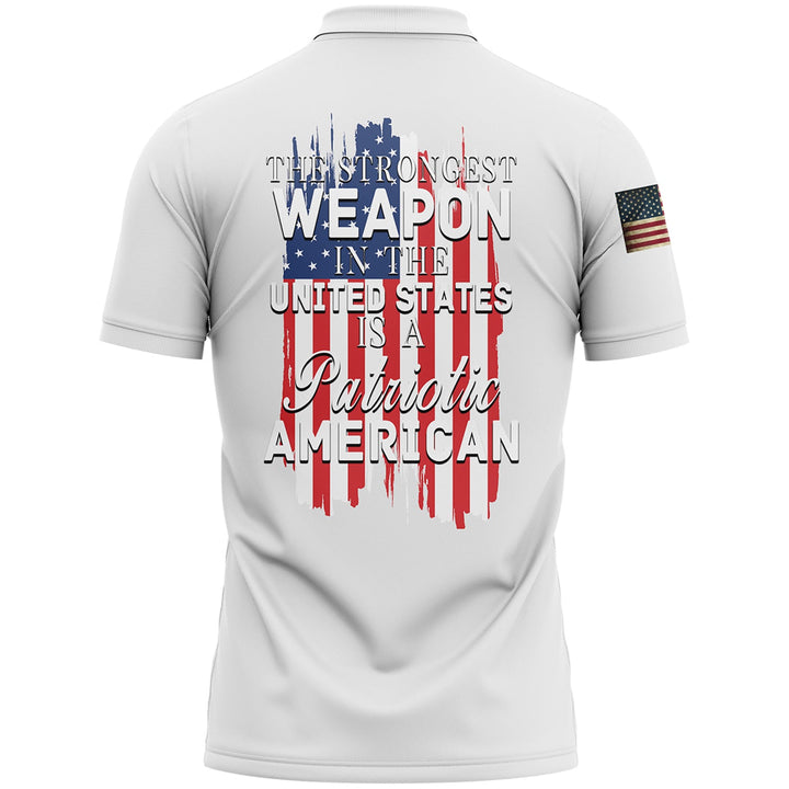 The Strongest Weapon In The United States Is A Patriotic American Custom White American Patriot Name Golf Polo Shirt