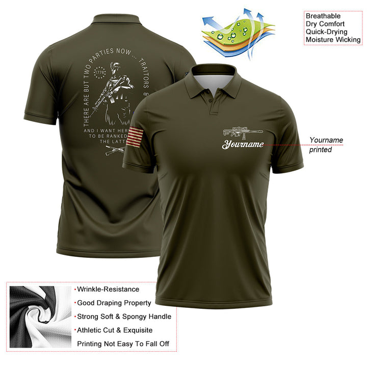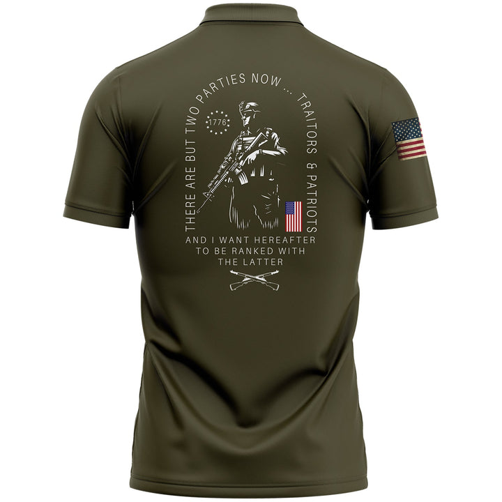 There Are But Two Parties Now Traitors & Patriot And I Want Hereafter To Be Ranked With The Latter Custom Olive American Patriot Name Golf Polo Shirt
