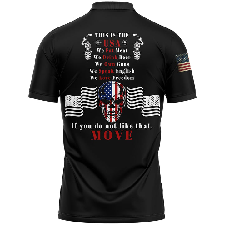 This Is The USA Custom Black Skull American Patriot Name Golf Polo Shirt