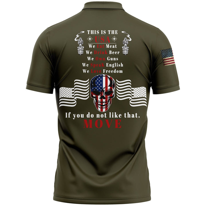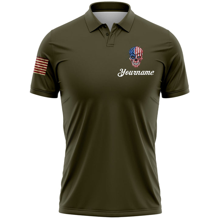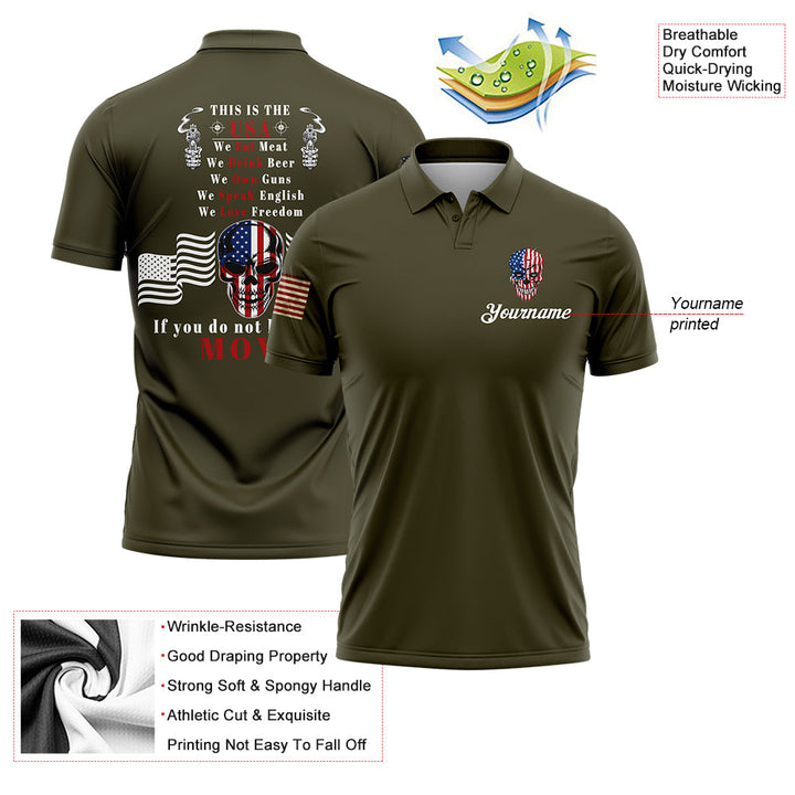 This Is The USA Custom Olive Skull American Patriot Name Golf Polo Shirt