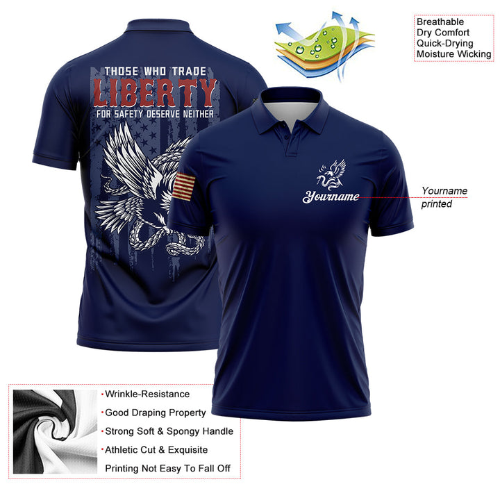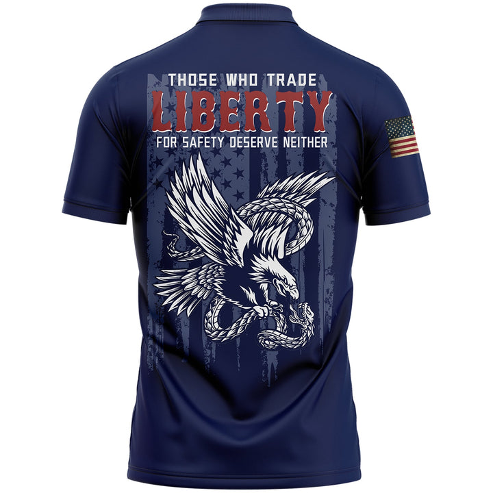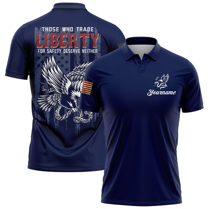 Those Who Trade Liberty For Safety Deserve Neither Custom Navy Eagle American Patriot Name Golf Polo Shirt