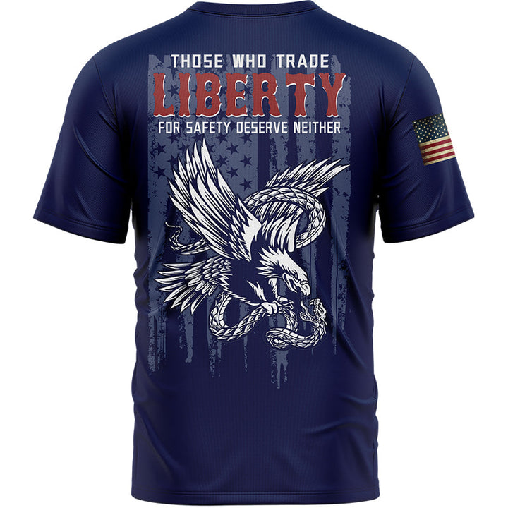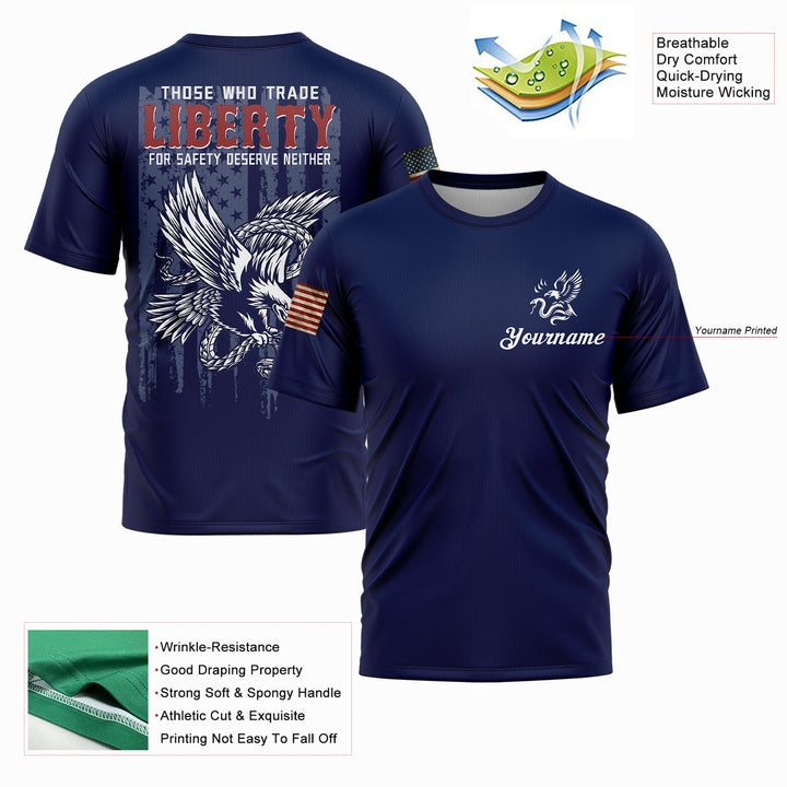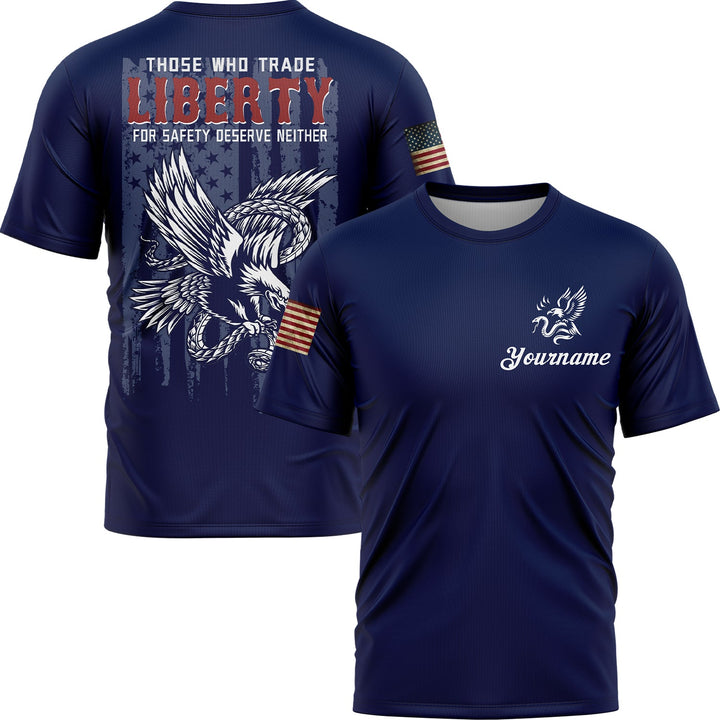 Those Who Trade Liberty For Safety Deserve Neither Custom Navy Eagle American Patriot Name T-Shirt
