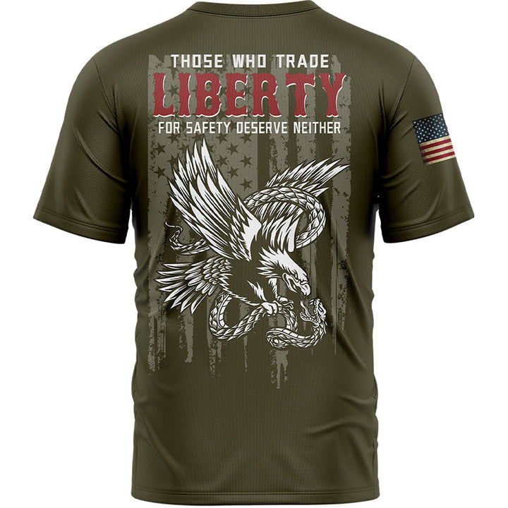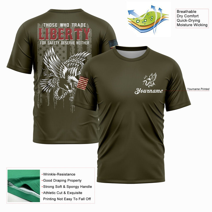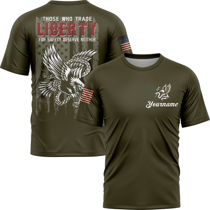 Those Who Trade Liberty For Safety Deserve Neither Custom Olive Eagle American Patriot Name T-Shirt