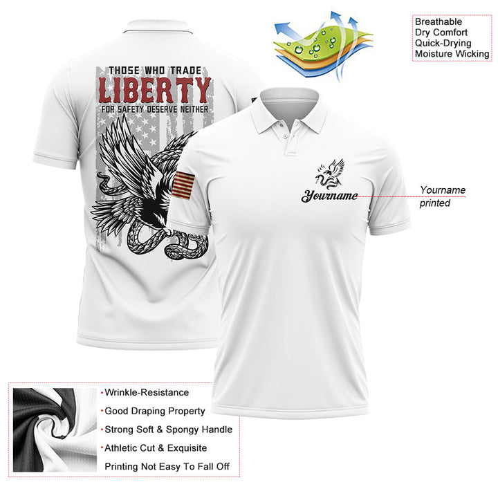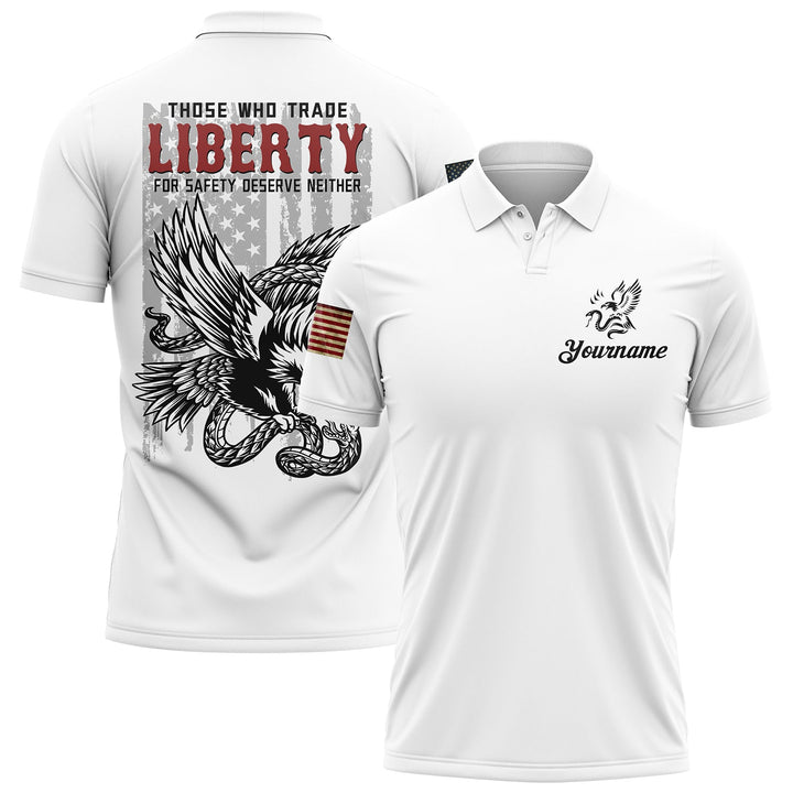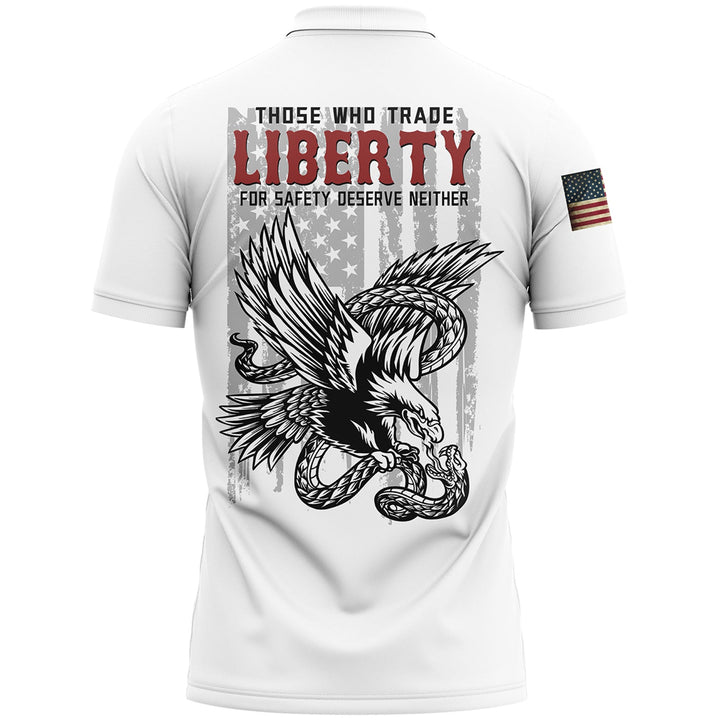Those Who Trade Liberty For Safety Deserve Neither Custom White Eagle American Patriot Name Golf Polo Shirt