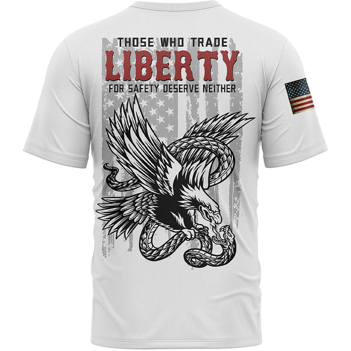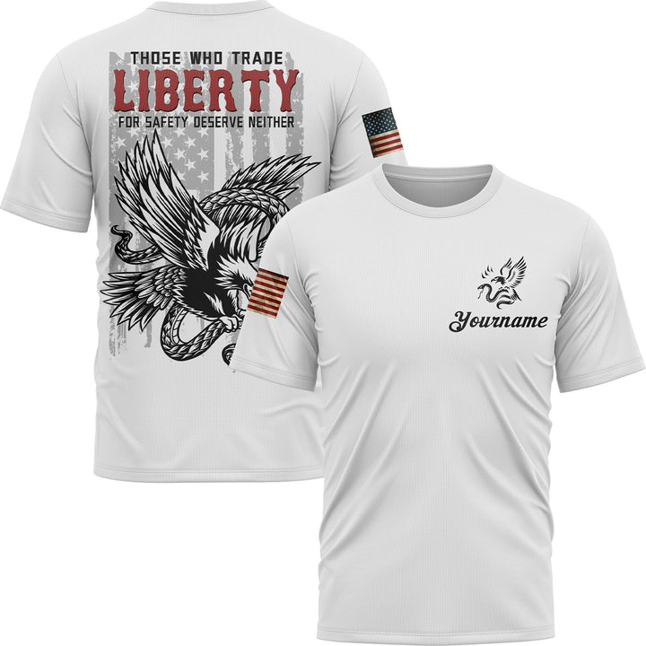 Those Who Trade Liberty For Safety Deserve Neither Custom White Eagle American Patriot Name T-Shirt