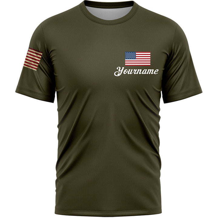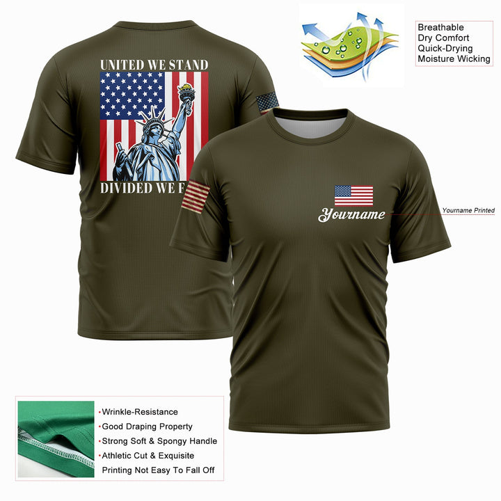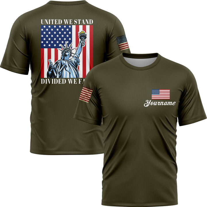 United We Stand Divided We Fall Custom Olive American Patriot Name T-Shirt