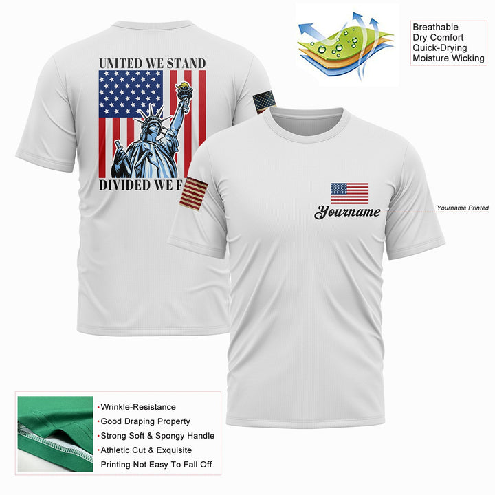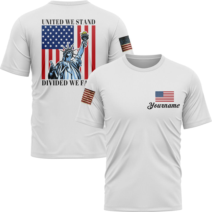 United We Stand Divided We Fall Custom White American Patriot Name T-Shirt