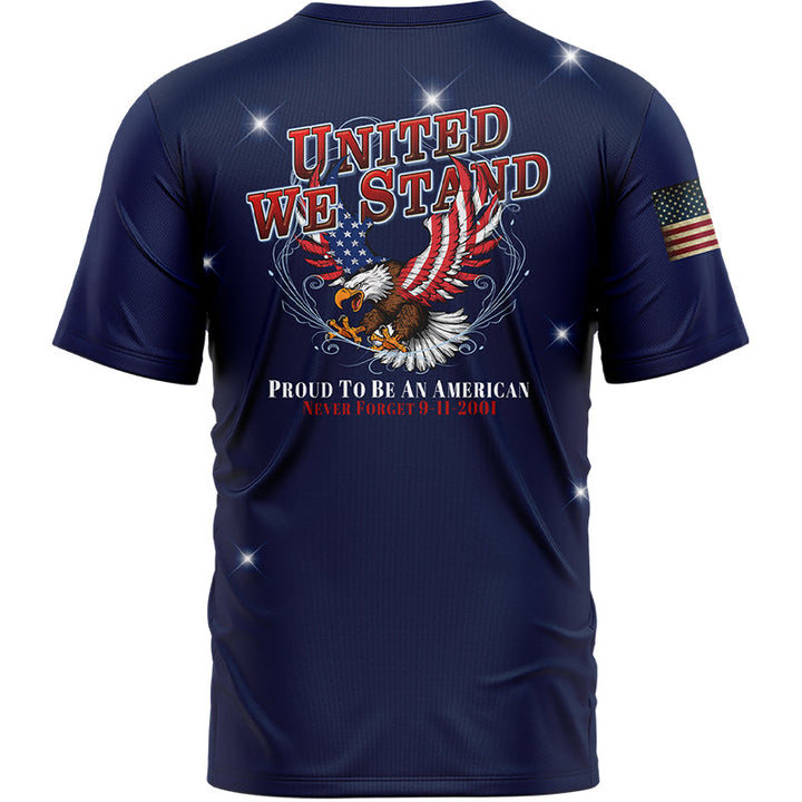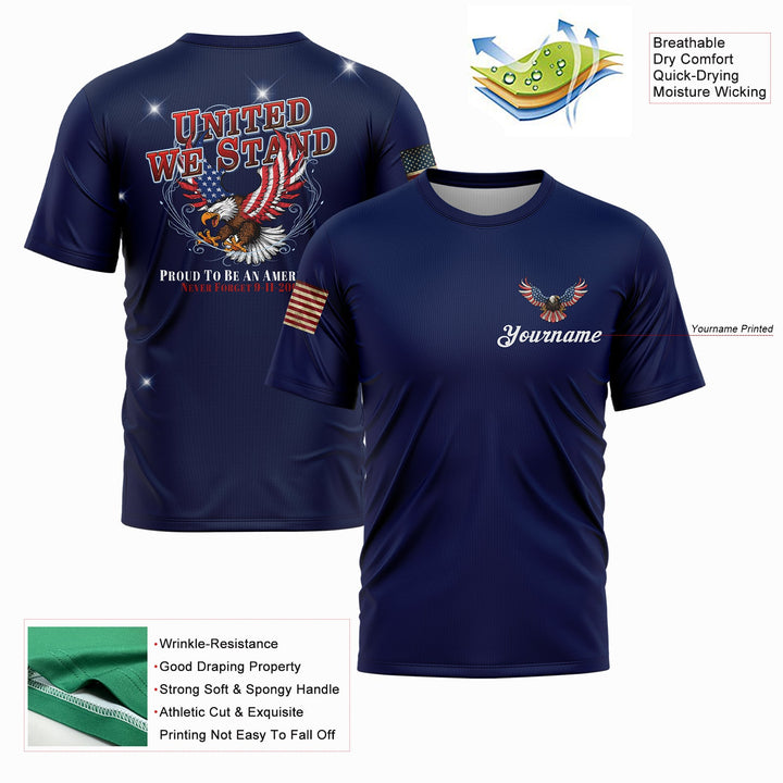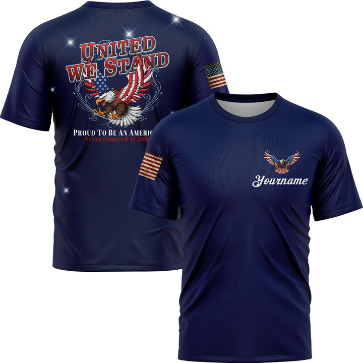 United We Stand Proud To Be An American Never Forget 9-11-2001 Custom Navy American Patriot Name T-Shirt