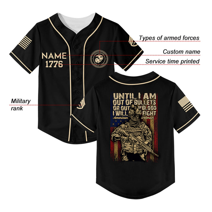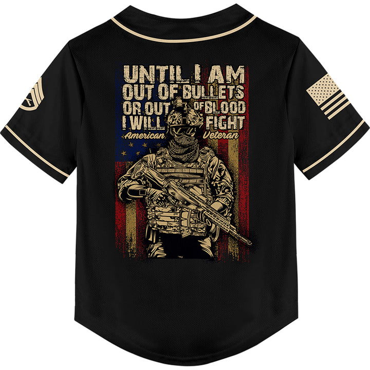 Until I Am Out Of Bullets Or Out Of Blood I Will Fight Custom Black American Military Rank Veteran Name Baseball Jersey