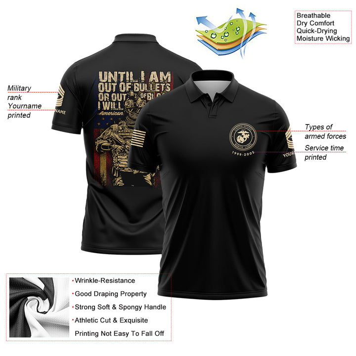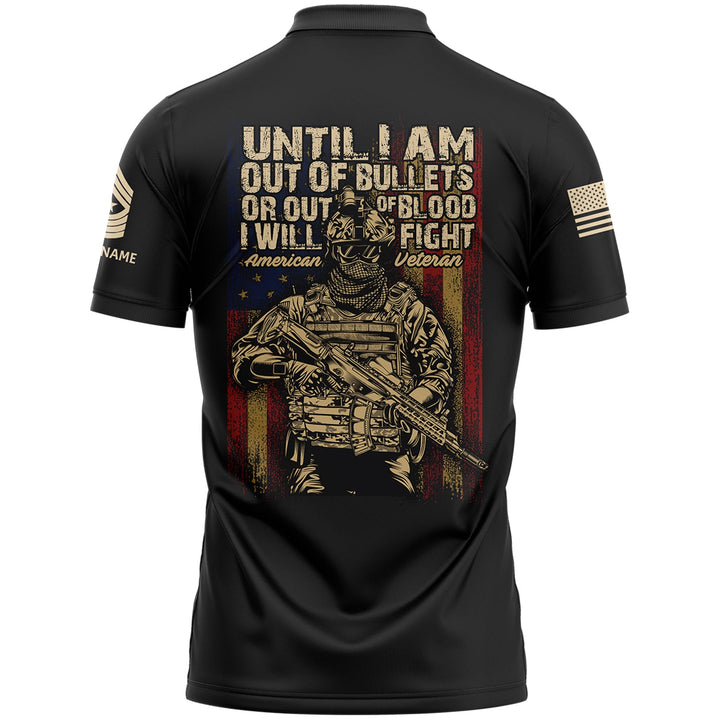 Until I Am Out Of Bullets Or Out Of Blood I Will Fight Custom Black American Military Rank Veteran Name Golf Polo Shirt