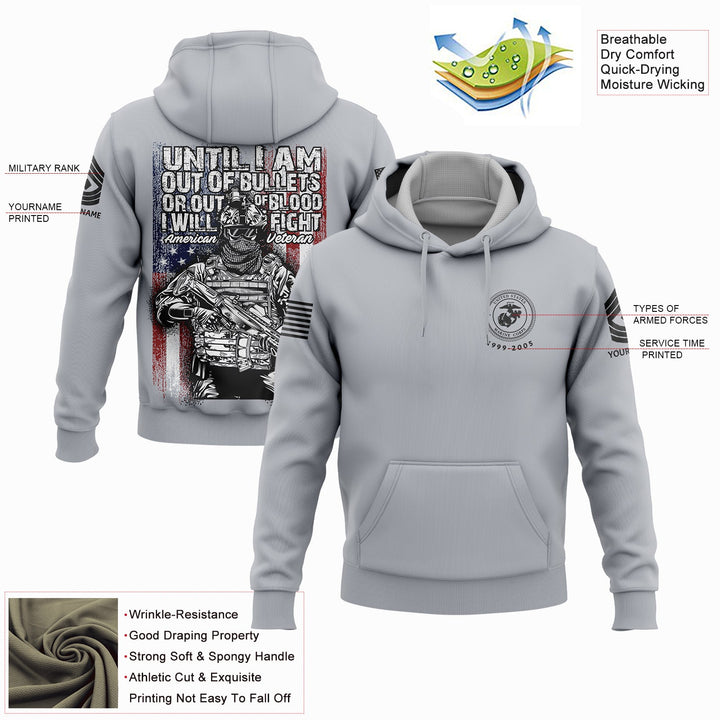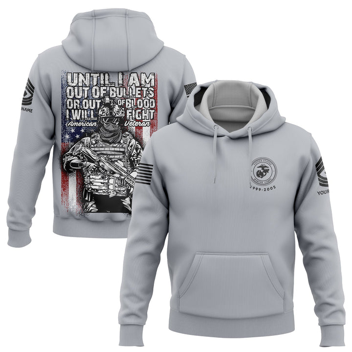 Until I Am Out Of Bullets Or Out Of Blood I Will Fight Custom Grey American Military Rank Veteran Name Hoodie