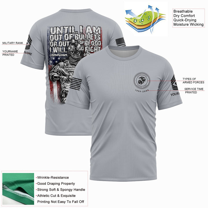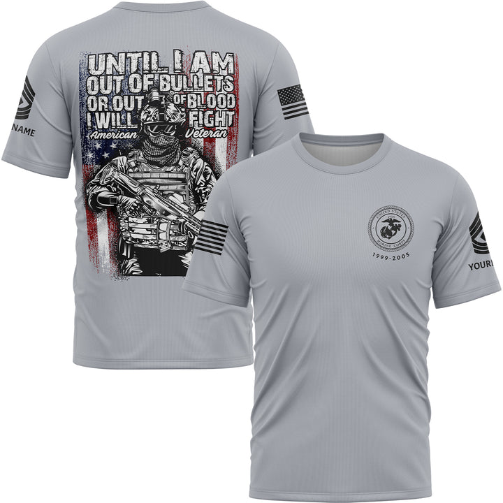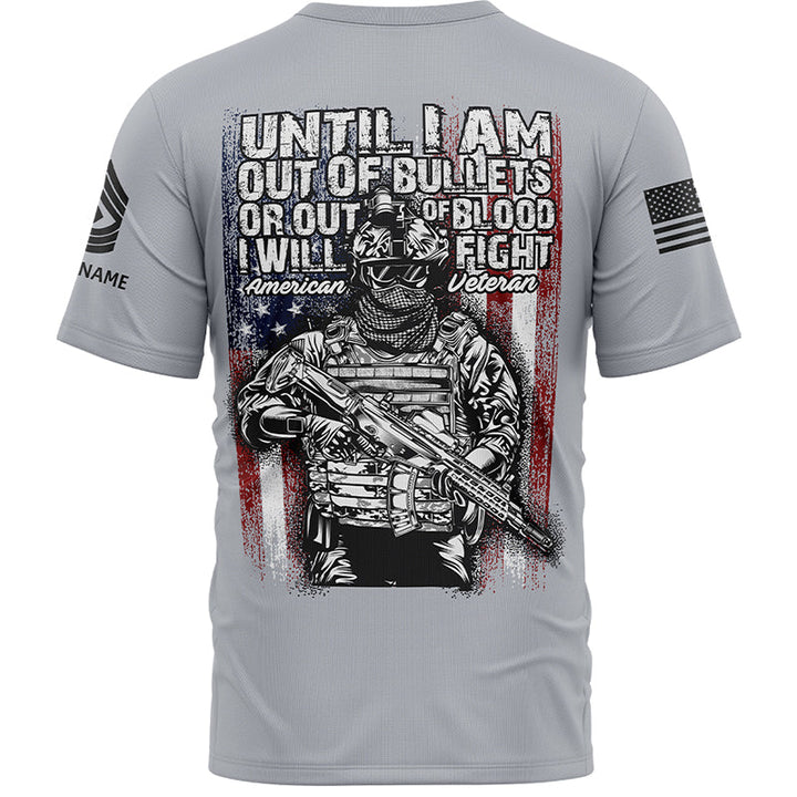Until I Am Out Of Bullets Or Out Of Blood I Will Fight Custom Grey American Military Veteran T-Shirt