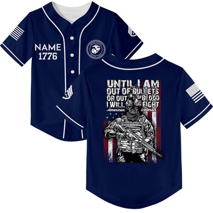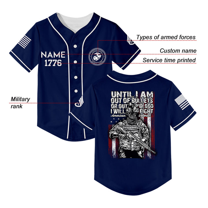 Until I Am Out Of Bullets Or Out Of Blood I Will Fight Custom Navy American Military Rank Veteran Name Baseball Jersey