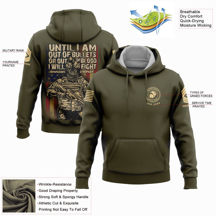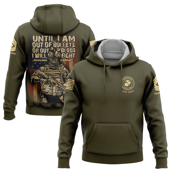 Until I Am Out Of Bullets Or Out Of Blood I Will Fight Custom Olive American Military Rank Veteran Name Hoodie