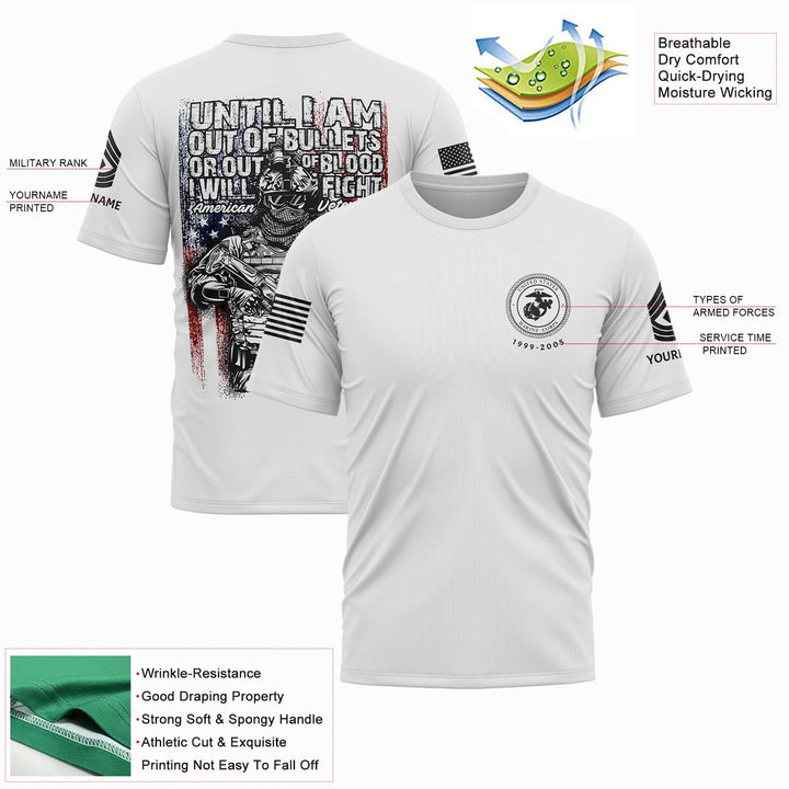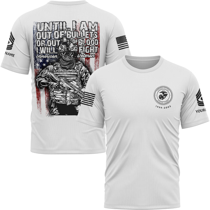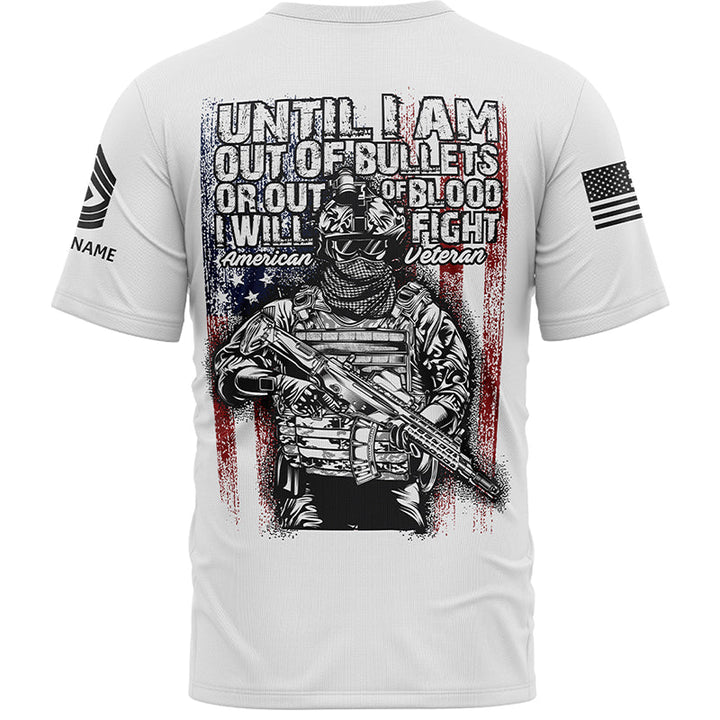 Until I Am Out Of Bullets Or Out Of Blood I Will Fight Custom White American Military Rank Veteran Name T-Shirt