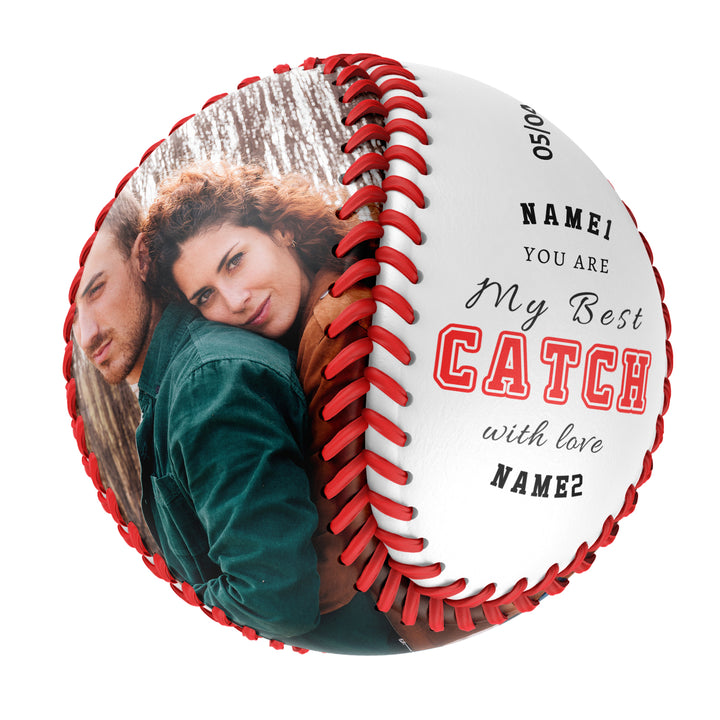 You Are Best Catch With Love Personalized Anniversary Name Date Photo White Baseballs