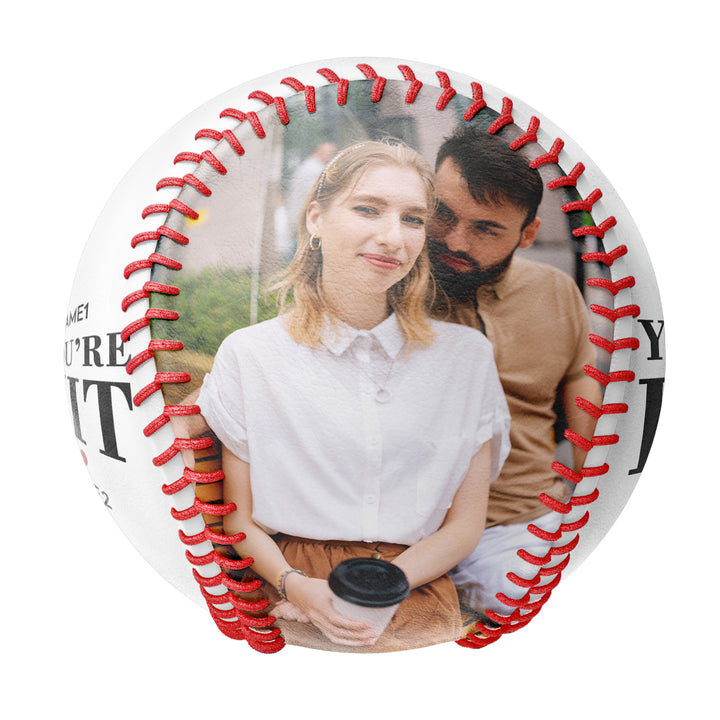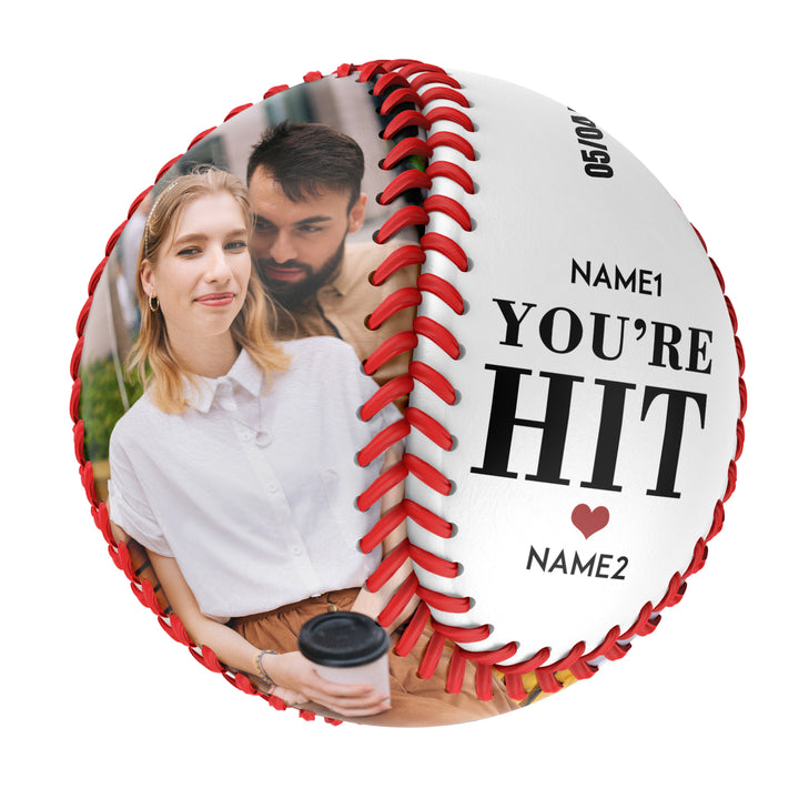 You're Hit Personalized Anniversary Name Date Photo White Baseballs